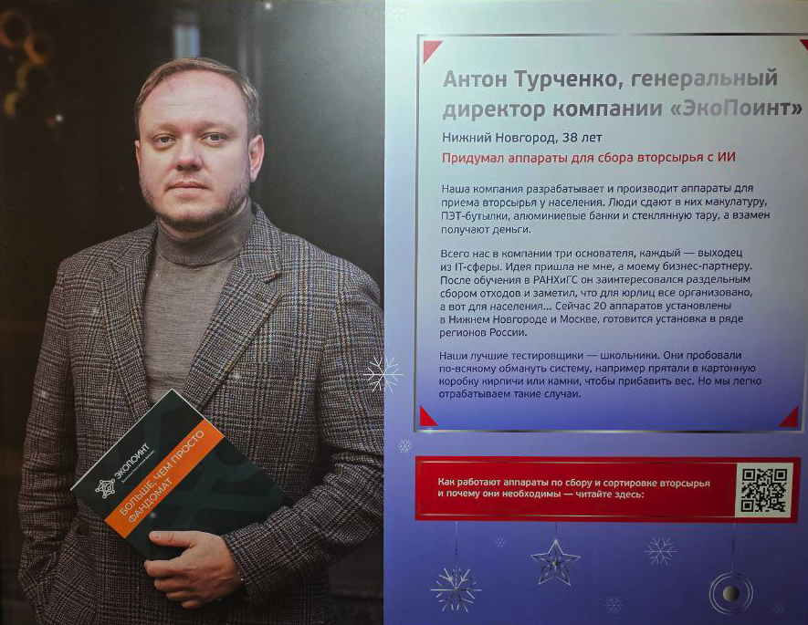 Генеральный директор компании ЭкоПоинт Антон Турченко принял участие в фотовыставке Агентства стратегических инициатив ТАСС, которая проходила с декабря 2024 года по январь 2025 года на Тверском бульваре в Москве.
